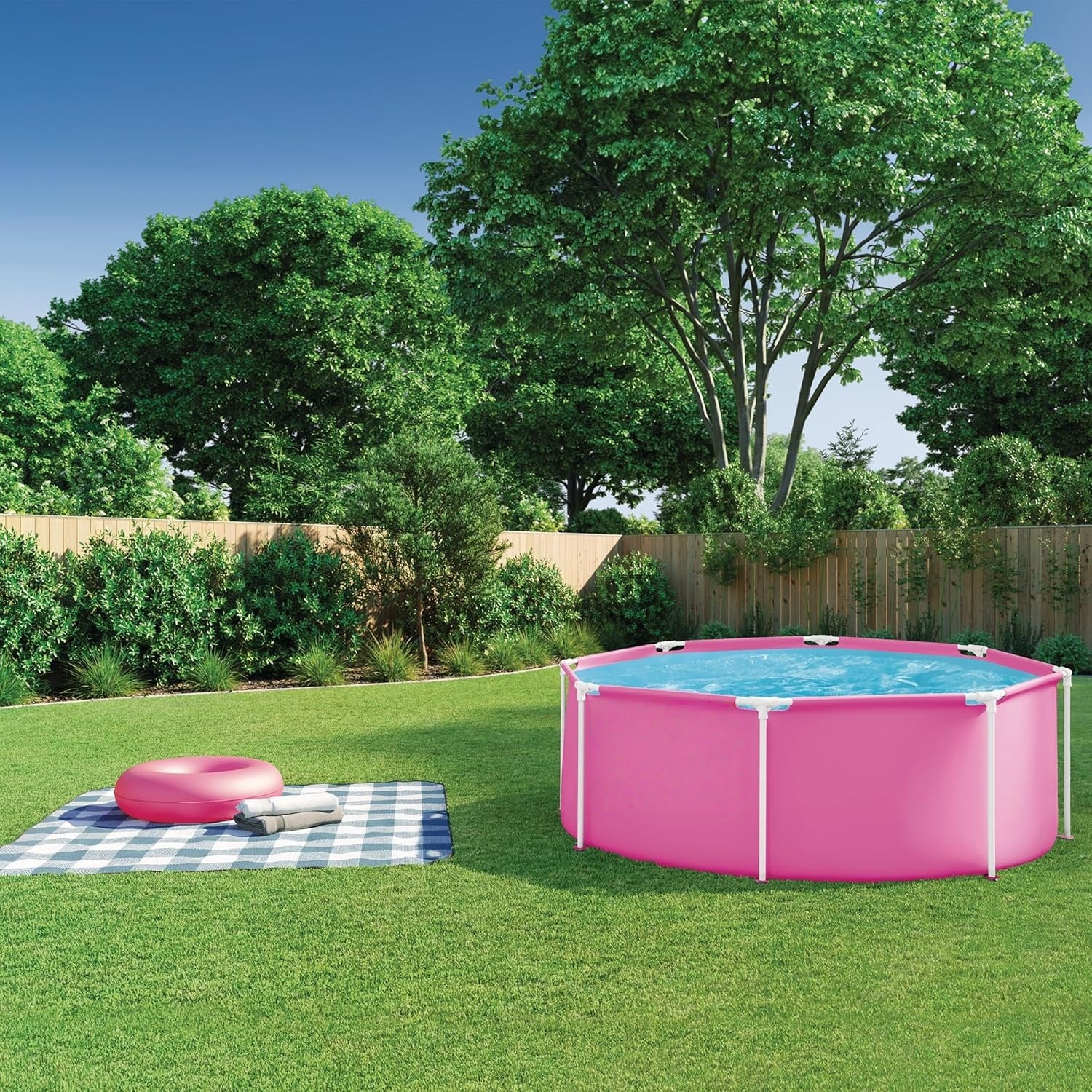 Pink Metal Frame Above Ground Pool | Round Garden Pool
